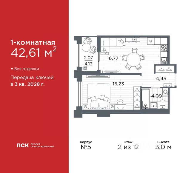 1-комн. квартира в Клубный квартал "Ассамблея" на 2 этаже. Квартира без отделки, новый владелец может сделать ремонт по индивидуальному дизайн-проекту. Общая площадь: 38.82 кв.м., жилая: 10.17 кв.м., площадь просторной кухни-столовой: 17.13 кв.м. Все окна выходят на одну сторону. В квартире одна лоджия, один совмещенный санузел. Высота потолков 3.0 м. Дом монолитный, черырехподъездный, высотой 12 этажей. Квартира находится в 4-й секции в корпусе 5. На этаже 10 квартир. В подъезде 1 пассажирский и 1 грузовой лифт. Окончание строительства - 3 квартал 2028 года. Оформление сделки по договору долевого участия. В шаговой доступности от жилого комплекса имеются станции метро (расстояние по прямой): "Горный институт" (1.0 км), "Василеостровская" (1.4 км), "Приморская" (1.5 км), также недалеко от этого корпуса расположены станции метро: "Спортивная", "Чкаловская". "Клубный квартал Ассамблея" — проект бизнес-класса на Васильевском острове, в самом сердце исторического Петербурга. Комплекс состоит из пяти корпусов переменной этажности — от 7 до 12 этажей — с выразительной архитектурой в стиле неомодернизма: светлый клинкер, панорамное остекление, просторное лобби с потолками высотой почти 8 метров. Потолки — до 3,2 метров. Подземный паркинг на 667 машиномест. Комфорт и инфраструктура Проект ориентирован на комфортную городскую жизнь. В закрытом дворе — ландшафтное озеленение, современные детские и спортивные площадки. Внутренний клуб для резидентов включает коворкинг, переговорные, кинозал, фитнес и бьюти-зону. IP-домофония с просмотром камер видеонаблюдения, дистанционное открывание дверей и доступа на территорию и в парадную со смартфона и планшета, просмотр показаний счетчиков, приложение для жителей PSK Home. Локация Расположение на Васильевском острове — сильная сторона проекта. До четырех станций метро ("Горный институт", "Василеостровская", "Спортивная", "Приморская") — 515 минут пешком. В шаговой доступности — зелёные зоны, культурные учреждения, в том числе сад "Василеостровец" и ДК имени Кирова. Основные магистрали Большой, Средний и Малый проспекты, Наличная и Уральская улицы. Съезд на ЗСД расположен недалеко от станции метро "Приморская", близ береговой линии. Благовещенский и Дворцовый мосты соединяют остров с центром города, а мосты Тучков, Биржевой и Бетанкура — с Петроградской стороной. Застройщик Группа компаний ПСК является одной из ведущих девелоперских компаний Санкт Петербурга. На протяжении 18 лет она возводит в Северной столице качественное жилье премиум, бизнес и комфорт-класса, социальные объекты школы и детские сады, апарт-отели и торговые центры. Является шестикратным обладателем золотого знака "Надежный застройщик России". #Z62AOc