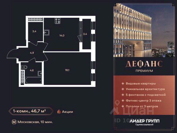 ЖК "Дефанс Премиум". Строительство завершено. Дом получил заключение о соответствии и готовится к вводу! Это проект авторской архитектуры с уникальными форматами квартир в 10 минутах ходьбы от станции метро "Московская". Дом выполнен в виде двух 23-х этажных арок, основания которых объединены единым внутренним пространством с большой парадной лестницей, променадом и большим фонтанным комплексом с подсветкой. В составе проекта построен большой фитнес-центр с бассейнами и зоной СПА. Часть квартир отделена от остальных жилых этажей специальным техническим этажом — это снимает все ограничения по перепланировке. Для части квартир предусмотрены индивидуальные входные группы и дополнительные лифты премиального немецкого бренда Tyssen Krupp (TKE). Фасады, облицованные испанской керамикой и алюминиевые панорамные окна с энергоэффективными стеклами AGС Energy подчеркивают высокий статус дома. На квартиры ЗПИФ и переуступки семейная ипотека не распространяется!