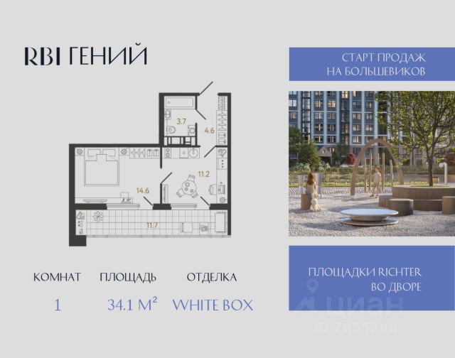 Новый дом "Гений" строится на правом берегу Невы в зелёной локации на проспекте Большевиков. До метро "Улица Дыбенко" — 10 минут пешком, столько же на авто до Володарского моста и набережной. До выезда на КАД и до площади Александра Невского — 20 минут. Жить в окружении знакомых улиц, парков и скверов, где в пешей доступности с десяток школ и детских садов, а до главного проспекта Петербурга полчаса пути — гениально, не правда ли? Строительство ведётся в две очереди. В трёх корпусах I-й очереди (от 14 до 20 этажей) — 611 квартир от студий до четырёхкомнатных. Есть эксклюзивные квартиры с эркерами и террасами. На последних этажах квартиры с потолками 3 метра. Все квартиры продаются с отделкой White Box. Фишка дома — приватный двор с двумя дворами, объединенными парящим мостом. Любители уединённого отдыха могут гармонизироваться в зелёных кабинетах среди цветущих деревьев или путешествовать сквозь пространство и время посредством буккроссинга — во дворе появится библио-беседка. Энерджайзеры смогут поработать и организовать комьюнити-активности в импровизированном уличном коворкинге с круглым столом или позаниматься на профессиональных outdoor-тренажёрах и степ-платформах. Детские площадки от АФА х Richter RUS тоже на территории обоих дворов. В правом появится домик "Мечтатели" с большой песочницей, брёвнами-балансирами и витражным окном. А в левом появятся сразу три площадки: "Головоломка" с лазательным лабиринтом, "Волна" с уникальным музыкальным игровым оборудованием и переговорными трубами, "Вращение" с большой качелей. Пространства дворов соединит пешеходный мост. Под ним проложат зелёный променад, где можно будет вздремнуть в гамаке, загорать и ловить солнечных зайчиков, любуясь зеркальными множествами, устраивать семейные пикники в бранч-зоне под навесом. Как и дворы, бульвар полностью без машин, охраняется 24/7 и доступен только для жителей по индивидуальному цифровому ключу. Внутри дома концепция продолжится в интерьерах лобби, которые воссоздают футуристичные кабинеты гениальных изобретателей 70-х годов. Для каждой очереди — своё двухровневое лобби с ДНК-лестницей и акцентными светильниками, стойкой ресепшн, welcome-зоной, переговорной и кофепоинтом. В четвёртом корпусе (строится в I-й очереди) появится клуб-гостиная с Wi-Fi, которая трансформируется в коворкинг. Для жителей оборудуют подземный паркинг с лифтом на жилые этажи: 601 машиноместо, среди которых 32 — с зарядкой для электромобилей. В каждой парадной — вместительные колясочные. Дом "Гений". Пространство гениальных открытий