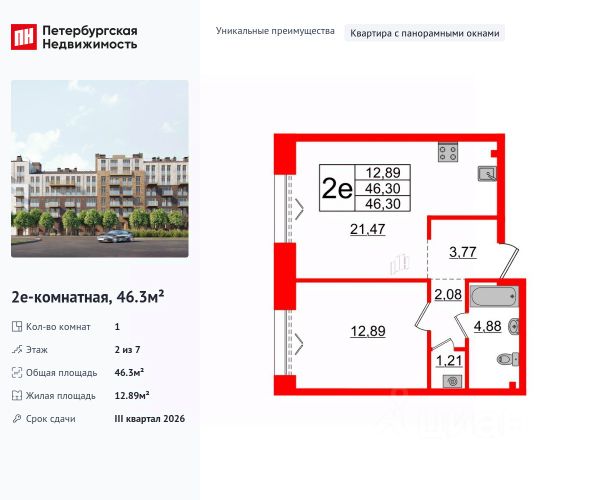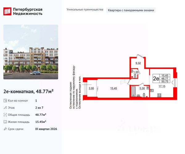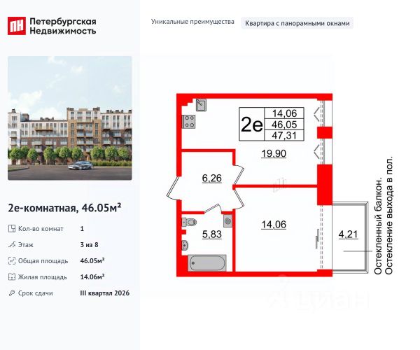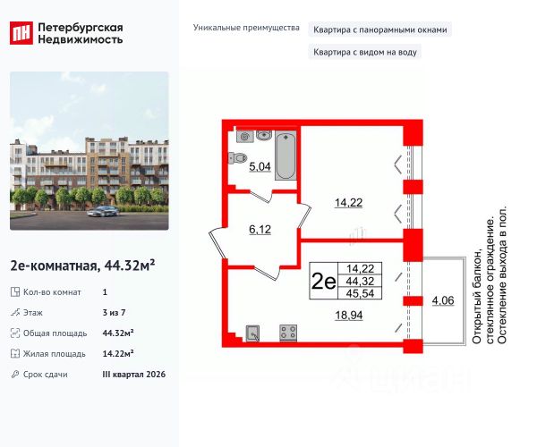 Продается просторная 1-комнатная квартира от застройщика в жилом комплексе "Империал Клаб" в уютном Василеостровском районе. До метро можно добраться на транспорте всего за 7 минут. Окна от пола до потолка позволят безгранично любоваться видами Петербурга, наполнят комнату солнцем и светом! Уникальная, функциональная европланировка, большая кухня-гостиная 20.39 м², просторная прихожая 5.19 м². Общая площадь квартиры - 44.85 м², жилая 14.06 м², высота потолка 3 м. Квартира продается c черновой отделкой. Что особенного в ЖК "Империал Клаб"? • Парадные виды на Большую Неву и Английскую набережную • Изысканная архитектура жилого комплекса. • Уникальное благоустройство. • Двухуровневые входные группы. • Панорамные окна, открытые террасы, вантовые балконы. • Двухэтажные сити-виллы с патио, квартиры с возможностью обустройства камина и зимнего сада с растениями. • Просторный фитнес-центр с бассейном и спа-зоной на первом этаже . • Премиальный сервис: заказ такси,выгул собак, уборка, доставка вещей .