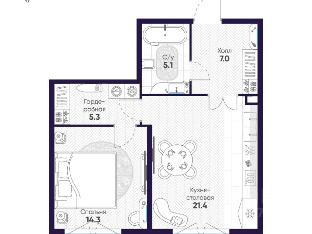 Продается 1-к квартира без отделки в ЖК "ЛДМ". Общая площадь квартиры — 48.3 кв. м, этаж 7 из 9. Тип дома — монолитный. Цена указана при 100% оплате.
