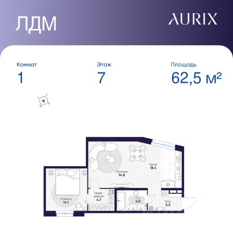Продается 1-к квартира без отделки в ЖК "ЛДМ". Общая площадь квартиры — 62.5 кв. м, этаж 7 из 9. Тип дома — монолитный. Цена указана при 100% оплате.
