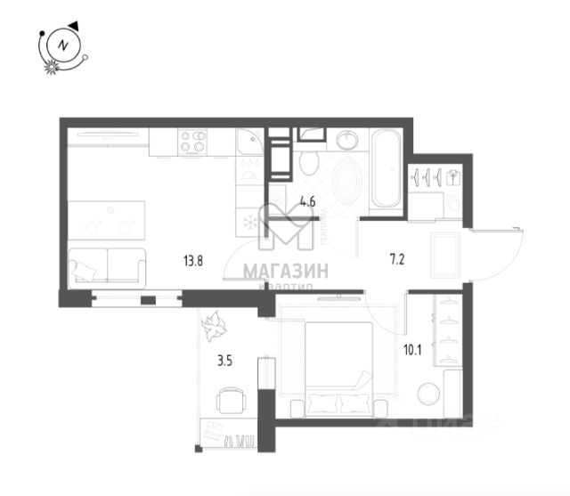 Продается квартира 605, по адресу г. Санкт-Петербург, поселок Шушары, Чудовская улица, дом 14, корпус 1, строение 1, корпус ЖК Монография в Монография на 10 этаже, с площадью 35.1 м2.