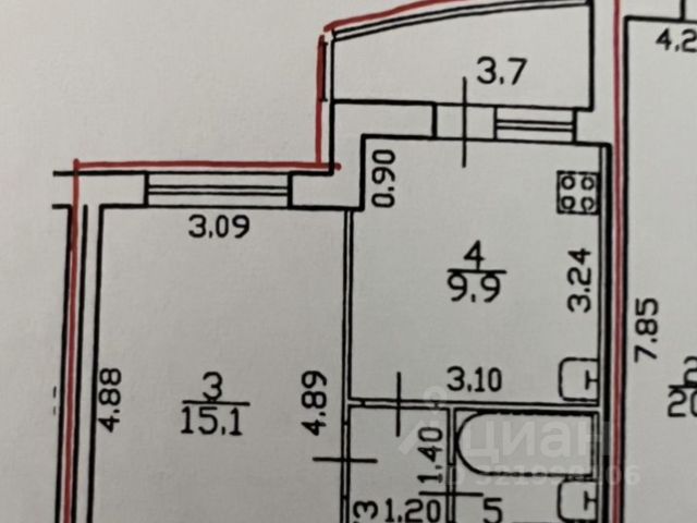 Общ. площадь 42.5 м², с балконом 47.4 м²