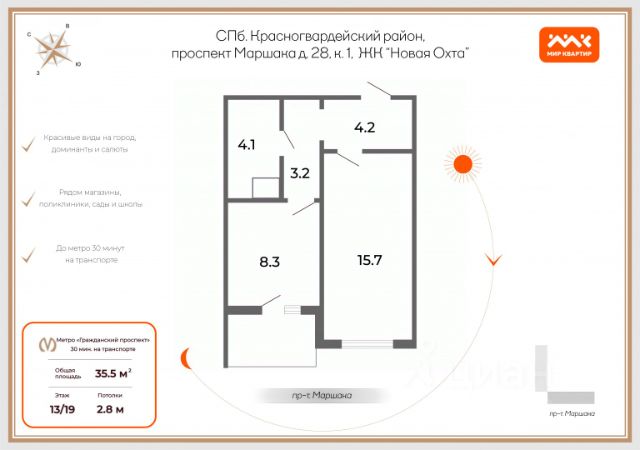 Агентам не беспокоить, есть свой. Купить 1-комнатную квартиру в ЖК Новая Охта в Санкт-Петербурге.