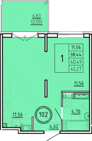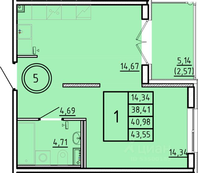 Продаётся 1-комнатная квартира в строящемся доме (Дом 1), срок сдачи: III-кв. 2026, общей площадью 38.41 кв.м., на 1 этаже.