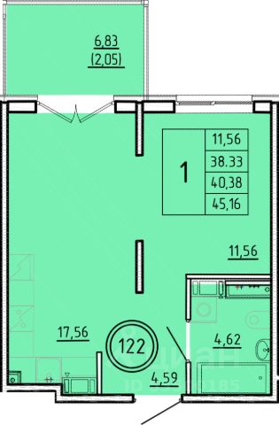 Продаётся 1-комнатная квартира в строящемся доме (Дом 2), срок сдачи: III-кв. 2026, общей площадью 38.33 кв.м., на 4 этаже.