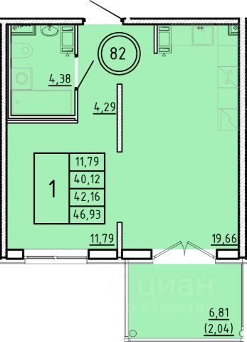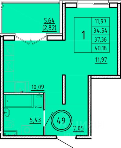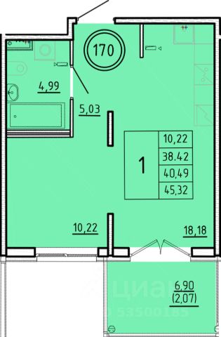 Продаётся 1-комнатная квартира в строящемся доме (Дом 1), срок сдачи: III-кв. 2026, общей площадью 40.12 кв.м., на 2 этаже.