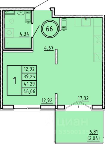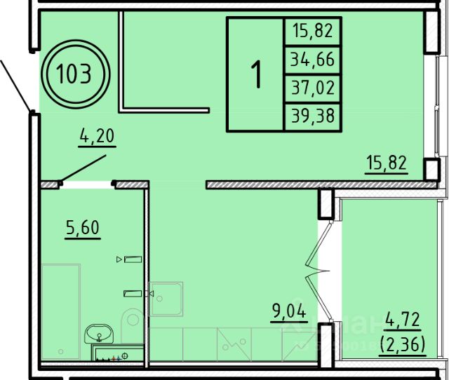 Продаётся 1-комнатная квартира в строящемся доме (Дом 1), срок сдачи: III-кв. 2026, общей площадью 34.66 кв.м., на 1 этаже.