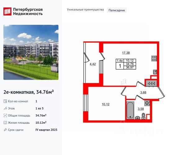 Продается уютная 1-комнатная квартира от застройщика в жилом комплексе "Парадный ансамбль" в престижном Московском районе. До метро можно добраться на транспорте всего за 20 минут. Уникальная планировка, кухня 10.24 м², вместительная прихожая 3.63 м². Общая площадь квартиры - 31.31 м², жилая 14.05 м², высота потолка 2.77 м. Квартира продается с отделкой "NORD LINE WHITE". Что особенного в ЖК "Парадный ансамбль"? • Инновационный Лицей Setl с оригинальной архитектурной концепцией и уникальной образовательной средой • Масштабное малоэтажное строительство в престижном Московском районе • Рекреационные зоны: парадный парк в центре квартала, ручей с собственной набережной, центральная площадь, ресторанный комплекс и пешеходный бульвар • Фасады из керамогранита и кирпича с яркими и акцентными входными группами • Две самые большие площадки Setl Kids и Setl Sport • Уникальные квартиры.High Flat на последних этажах, палисадники у квартир на первом этаже, семейные секции, квартиры с саунами и окном в ванной