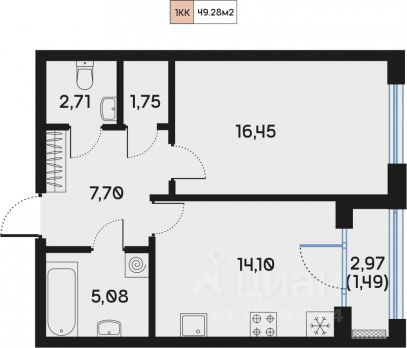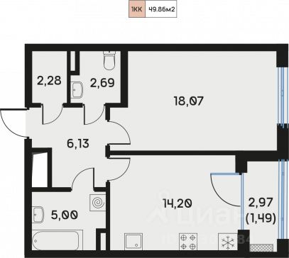 Продаётся 1-комнатная квартира в строящемся доме (Корпус 1), срок сдачи: II-кв. 2026, общей площадью 50.82 кв.м., на 7 этаже. Новый жилой дом от застройщика "Структура-4" расположен по адресу: Россия, Санкт-Петербург, набережная реки Смоленки, 8/86, литера Б