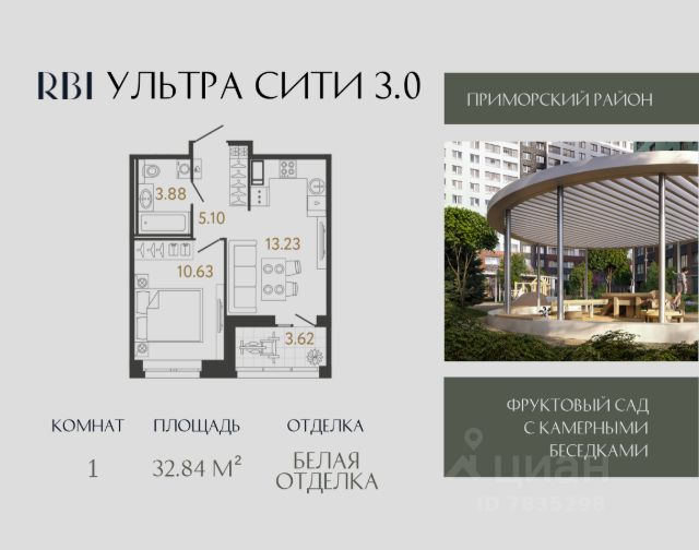 Новый ЖК Ультра Сити 3.0 от RBI в Приморском районе Петербурга. Современный город ультравозможностей, где мечта о гармоничной жизни за городом воплотится в мегаполисе со всеми его преимуществами. Новый проект от RBI строится в перспективной локации на пересечении проспекта Королёва и Арцеуловской аллеи в районе Парашютной улицы. До выездов на ЗСД и КАД — 15 минут. Рядом детские сады и школы, современные медицинские и спортивные учреждения, торговые центры и магазины. Прямо в доме откроется детская поликлиника, а на прилегающей территории построят муниципальный детский сад. Всего в 4 корпусах дома 946 квартир от 24 до 90 м². Планировки — от классических до "евро" с кухней-гостиной и мастер-спальней с гардеробной. Высота потолков — 2,7 метра. Все квартиры продаются с белой отделкой. Насладиться солнечным СПА среди цветущих яблонь и уссурийских груш в собственном фруктовом саду, провести онлайн-встречу или поработать с ноутбуком в обогреваемой клубной беседке с розетками под навесом. Прогуляться с близкими по фруктовой аллее до детской площадки, чтобы покатать дочь или сына на качелях, а потом с улыбкой наблюдать, как весело и увлечённо они резвятся в мега-песочнице с водяными аттракционами и решают головоломки на бизибордах — вот повседневные сценарии вашей счастливой жизни в будущем ЖК Ультра Сити 3.0! В каждой секции — своё лобби с витражными окнами и воздушными световыми колоннами — чтобы ощущение гармонии с природой не покидало вас и внутри дома. В каждой парадной зоны ожидания для гостей и вместительные колясочные. Для хранения габаритных вещей можно отдельно приобрести кладовую на -1 этаже, для авто — машиноместо в отдельно стоящем тёплом паркинге. Приватный двор полностью без машин охраняется 24/7, вход по электронному ключу. Можно уверенно отпускать детей на прогулки со сверстниками и приглядывать за ними со смартфона благодаря технологии "умный дом". Для занятий спортом на свежем воздухе в Ультра Сити 3.0 установят профессиональное уличное оборудование для кардио и силовых тренировок, настольный теннис. Ещё одна фишка проекта — ремонтная станция для велосипедов: отладить свой двухколёсный транспорт, подкачать шины и подтянуть слетевшую цепь можно будет, не выходя из дома. Выбирайте Ультра Сити 3.0, чтобы каждый день ловить вайб загородной жизни в ритме мегаполиса!