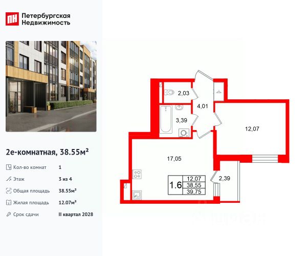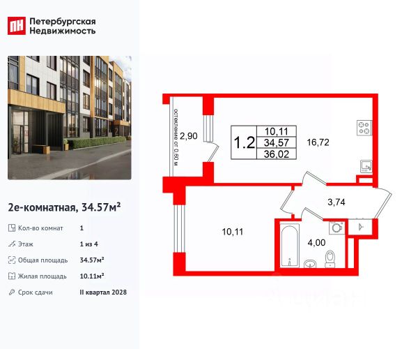 Продается просторная 1-комнатная квартира от застройщика в жилом комплексе "Univer City" в на юге Санкт-Петербурга. До метро можно добраться на транспорте всего за 30 минут. Удобная, классическая планировка, кухня 10.18 м², просторная прихожая 5.03 м². Общая площадь квартиры - 36.05 м², жилая 17.11 м², высота потолка 2.77 м. Квартира продается с отделкой "Норд Лайн серый". Что особенного в ЖК "Univer City"? • Малоэтажное строительство • Скандинавские фасады с отделкой керамогранитом, акцентные входные группы • Закрытые внутренние дворы без машин • Пешеходный променад с тематическими зонами, еловый сквер и яблоневый сад • Univer Park, включая SetlSport и SetlKids, площадку для выгула собак и зоны отдыха • Инновационный Лицей Setl с оригинальной архитектурной концепцией и уникальной образовательной средой