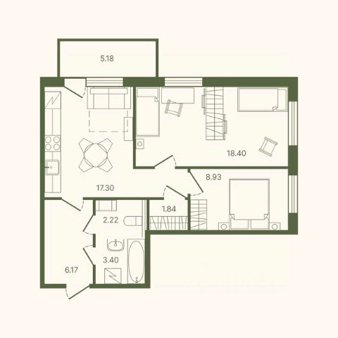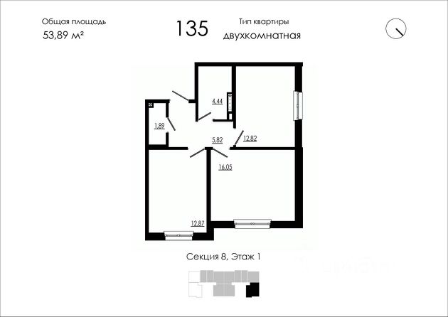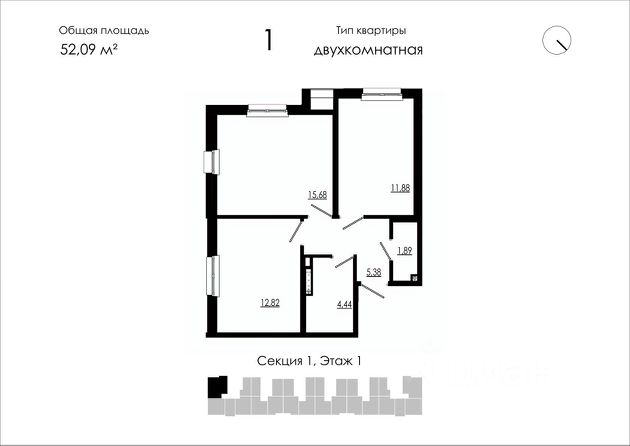 ПЛОЩАДЬ квартиры 51,4 м²