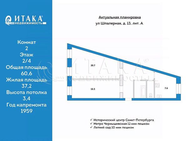 В сердце Петербурга продаем уютнейшую квартиру, адекватных размеров, с видом на памятник Пушкину и ТРК "Галерею". Архитектурный стиль - Эклектика. Архитектор - арх. Басин Николай Петрович. Сам дом дореволюционный, жили в нем семьи П. К. Симонова - Евментьева - Орлова. Кап.Ремонт был сделан в 2020г. Ремонт Крыш, внутридомовых инженерных систем водоотведения в квартирах, внутридомовых инженерных систем холодного водоснабжения в квартирах. О квартире: Высокие потолки в 3.4 метра Дом газифицирован. Между комнатами нет несущих стен, поэтому можно объединить и сделать одну большую комнату. Вход в ванную можно сделать из прихожей. ПЕРЕКРЫТИЯ - ДЕРЕВЯННЫЕ по документам. Из не обычного: Вход из арки, поэтому пролеты не полноценные, подняться не составит труда. На этаже одна квартира (эта), вторая дверь это черный ход другой квартиры, которым не пользуются и третья дверь это техническое помещение. Юридическая сторона: Один взрослый собственник. Без обременений. Прописанных в квартире нет. Более 5 лет. Возможна любая форма оплаты.