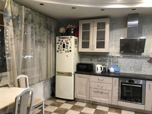 Кухня компактная, но с нишей для стиральной машины в строенном шкафу для полотенец, химии и косметики.