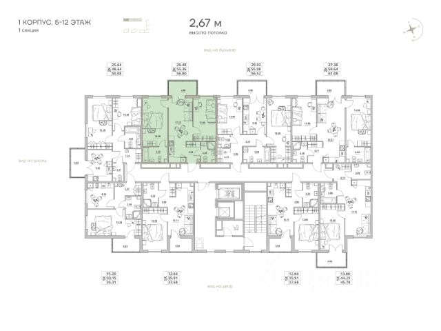 - Квартира 51 м², двусторонняя , окна спальни выходят в тихий двор, окна кухни и гостиной выходят на улицу.