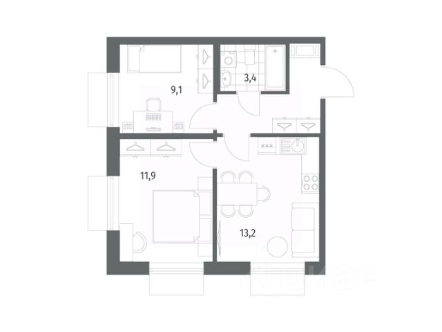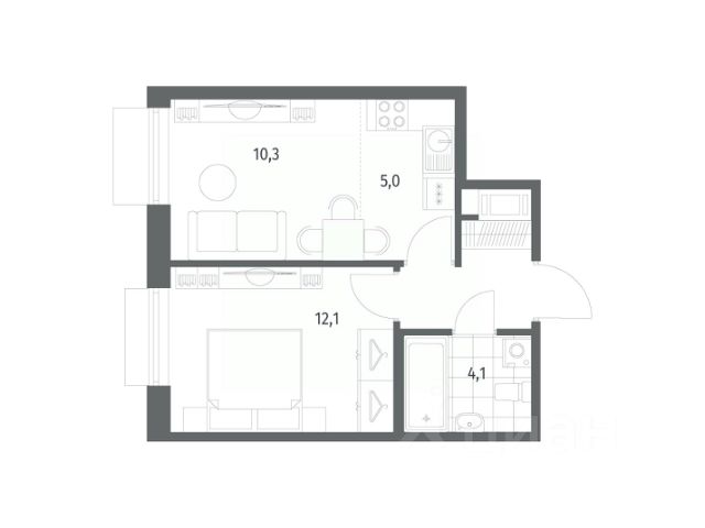 Раздельный санузел добавляет удобства в повседневную жизнь. В коридоре 6,8 кв.м. предусмотрена ниша под прихожую.