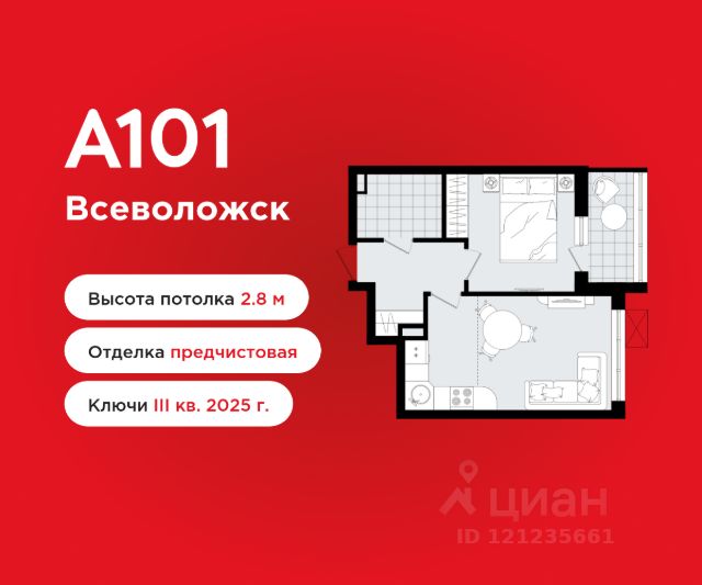 2-комнатная квартира площадью 39.60 в ЖК "А101 Всеволожск" c лоджией на 5 этаже. Квартира с предчистовой отделкой. Вид из окна во двор. В квартире 1 санузел. Высота потолков 2.80 м. ОТДЕЛКА Квартира с предчистовой отделкой предполагает: качественную стяжку на полах под финишное покрытие, потолок с обеспыливающей грунтовкой белого цвета, ровные стены с покрытием штукатурка. Выполнены все работы по проведению электрики. На все отделочные работы от застройщика предоставляется гарантия. Если вы хотите дозаказать дизайнерскую отделку, обращайтесь к нашими специалистами. ПАРАДНАЯ Мягкая мебель, живые растения и натуральные материалы в отделке формируют современный и уютный интерьер входной группы, радующий глаз и создающий приятную атмосферу для встреч с гостями. Для вашего удобства реализован безбарьерный вход, отвечающий требованиям доступной среды для всех жильцов, а также в каждой парадной имеется отдельное помещение для хранения колясок и велосипедов. ДВОРЫ И ОКРУЖЕНИЕ Большая часть территории комплекса отведена под зелёные благоустроенные зоны: теневые сады, уютные городские пространства с развитой тротуарной сетью и велодорожками - всё для вашего активного и здорового образа жизни. Внутренние дворы закрыты от посторонних и свободны от автомобилей. Каждый дом оснащён высокотехнологичными системами видеонаблюдения и контроля доступа, обеспечивая максимум безопасности и спокойствия для вас и ваших близких. Окружение района - живописный природный ландшафт. Всего в 5 минутах ходьбы располагается Ковалёвский лесопарк - источник кислорода, пространство для спорта, отдыха и приятных прогулок на свежем воздухе. ИНФРАСТРУКТУРА В жилой застройке сохранена естественная среда благодаря разнообразию растительности, извилистым дорожкам и уличной мебели из натуральных материалов. Здесь находится насыщенная сеть экотроп протяжённостью более 10 км прямо у дома, а просторная площадь позволяет жителям приятно провести время, общаться с соседями и отдыхать. Также предусмотрены зоны для отдыха и специально оборудованные спортивные площадки для активного образа жизни на свежем воздухе. Всё самое необходимое - рядом с вашим домом. Выпить утром кофе в уютном кафе или поужинать с друзьями, отвести детей на развивающие занятия или игровую площадку, купить продукты и товары первой необходимости. В проекте запланировано уникальное гастрономическое пространство, располагающееся на основном пешеходном бульваре жилого района. Территория дополнительно оборудована местами отдыха на свежем воздухе, а для ресторанов и кафе будет предусмотрена возможность организации летних веранд. ЗАСТРОЙЩИК ГК "А101" - один из крупнейших застройщиков России. Каждая восьмая квартира, проданная в Москве, находится в районе, построенном компанией, что подчеркивает её значимость и успех на рынке недвижимости. Продам 2-комнатную квартиру 40 м2 (квадратных метров) в Ленинградской области.