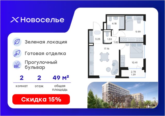 Продаётся 2-комн. квартира площадью 50,8 кв.м на 3 этаже 15 этажного дома (Корпус 1, Секция 1) проекта ПИК Янинский лес. Светлый просторный подъезд на уровне земли, функциональная планировка, большие окна, c отделкой. Жилой квартал "Янинский лес" возводится в районе Янино-1 Ленинградской области. Автобусная остановка находится в 3 минутах пешком. Проект расположен вплотную к восточной границе Санкт-Петербурга - в 4 минутах от КАД. До метро "Ладожская" - 23 минуты на общественном транспорте. До исторического центра города можно доехать за 25 минут на автомобиле. "Янинский лес" - масштабный проект из 32 жилых корпусов, где будет всё для комфортной жизни. Здесь предусмотрены надземные паркинги, откроются детские сады, школа и поликлиника. Кроме этого, появятся места, в которых можно проводить свободное время: ледовая арена и торговый центр площадью больше 3000 м². Жилой район строится по всем правилам ПИК-Стандарта: в зелёных дворах-парках появятся современные детские и спортивные площадки, пешеходный бульвар и другие места для отдыха. На первых этажах разместятся магазины, кафе и другие сервисы. Во дворах не будет автомобилей, а для гостей предусмотрены парковочные места. Проект окружают лесные массивы. В пешей доступности находится Ржевский лесопарк: летом там можно гулять и собирать грибы, а зимой кататься на лыжах. Также рядом расположен памятник природы Колтушские высоты - парк с обустроенными экотропами и веломаршрутом. А главное место притяжения местных жителей - озеро с обустроенным местом для пикников. Артикул 1048635 (Застройщик ООО "СПЕЦИАЛИЗИРОВАННЫЙ ЗАСТРОЙЩИК"ЭКСТРАГРАД") [cn_sbp_1847014] Купить 2-комнатную квартиру площадью примерно 50 м2 (кв.м.) в Ленинградской области.