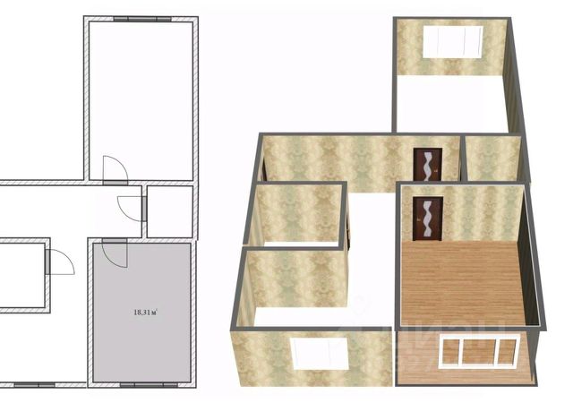Просторная прихожая 9.2 кв.м., изолированные комнаты 17.2+12.8 кв.м., гардеробная 2.2, объёмная лоджия.