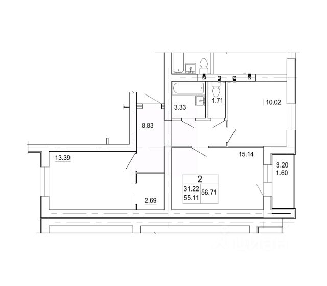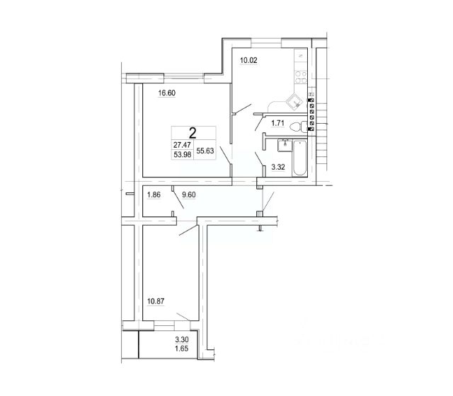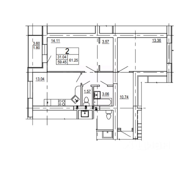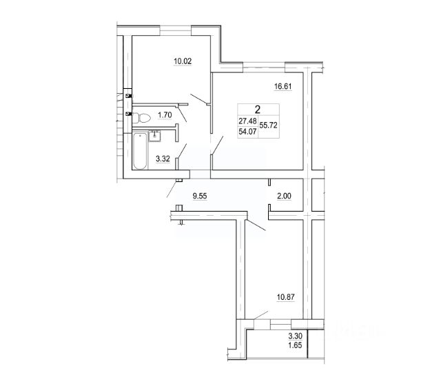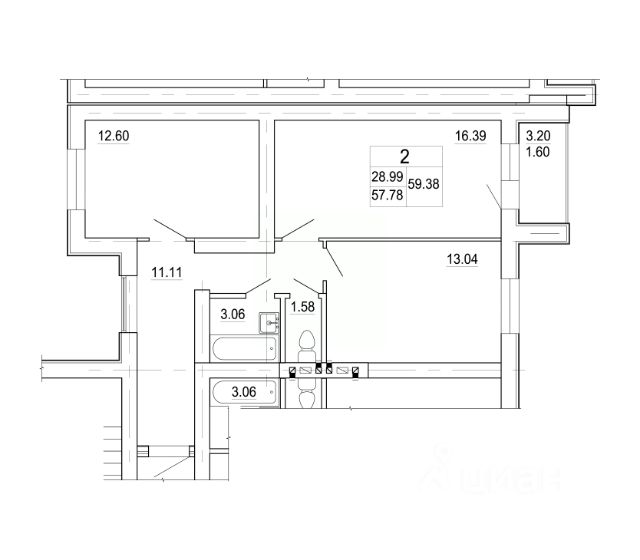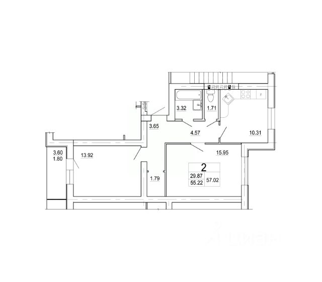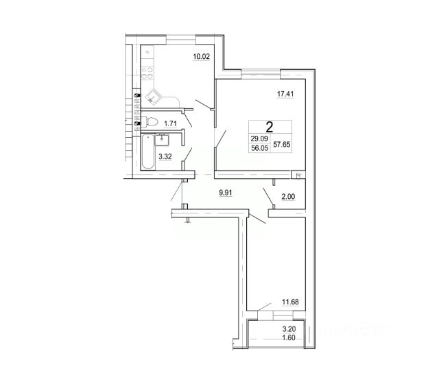 - общая площадь квартиры 42,6 кв.м., комнаты 17 и 12 кв.м., кухня 5,4 кв.м., высота потолков 2,5 м., санузел раздельный;