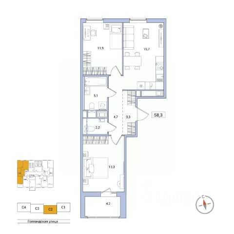 Продается 2 комнатная квартира 4 в ЖК Я. Драйв 2оч. к.2, дом сдан