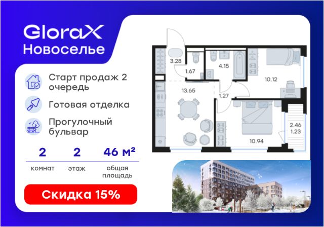 Продаётся 2-комн. квартира площадью 46,01 кв.м на 2 этаже 12 этажного дома (Корпус 4.2, Секция 1) проекта ПИК Таллинский парк. Светлый просторный подъезд на уровне земли, функциональная планировка, большие окна, без отделки. "Таллинский парк" - проект в Ленинградской области, в районе Новоселье. До станции метро "Проспект Ветеранов" - 15 минут на автомобиле, а до КАД можно доехать всего за 4 минуты. "Таллинский парк" включает 16 жилых домов, детский сад и школу. В проекте появится центральный сквер с обильным озеленением, а через весь квартал протянутся широкие пешеходные бульвары. В зелёных дворах-парках будут оборудованы современные детские и спортивные площадки, обустроены места для отдыха. На первых этажах разместятся магазины, кафе и другие сервисы. Проектом предусмотрены персональные кладовые помещения - это доступный, экономичный и удобный способ хранения сезонных и крупногабаритных вещей. Освободите свою квартиру для полноценной жизни. Район Новоселье активно развивается в городском формате: здесь уже работают детские сады, школа и магазины. Для любителей зимних видов спорта открыта круглосуточная ледовая арена Ice Rink. За покупками и развлечениями также можно быстро доехать: 10 минут - и вы в Аутлете Fashion House Таллинское, гипермаркетах Лента, Леруа Мерлен и Окей. В 10 минутах на автомобиле находится Финский залив, на берегу которого расположились объекты культурного наследия. Рядом - Константиновский парк с отреставрированным дворцом, а чуть дальше расположена усадьба Знаменка. В великолепном Петергофе вы будете уже через 20 минут. Артикул 1026195 (Застройщик ООО "СПЕЦИАЛИЗИРОВАННЫЙ ЗА СТРОЙЩИК "СТРОЙ-ЭКСПЕРТ ") [cn_sbp_1807009]