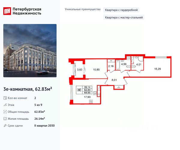 Продается просторная 2-комнатная квартира от застройщика в жилом комплексе "Кристалл Холл" в Адмиралтейском районе. До метро можно добраться пешком всего за 15 минут. Мастер-спальня с собственной ванной комнатой. Самое приватное пространство в вашей квартире. Уникальная, функциональная европланировка, большая кухня-гостиная 17.93 м², просторная прихожая 8.01 м². Общая площадь квартиры - 62.83 м², жилая 26.14 м², высота потолка 3 м. Квартира продается c черновой отделкой. Что особенного в ЖК "Кристалл Холл"? • 300 м. до наб. Фонтанки, в двух шагах от Троицкого собора и Юсуповского дворца. • Сочетание стилей модерн и эклектика, дополненных элементами классического петербургского стиля. • Клубный дом премиум-класса - всего 236 квартир. • Парадное лобби с потолком до 6,5 м и лаунж-зоной с камином. • Камерный сад, зеленая гостиная, фонтан. • Клуб резидентов: кинотеатр, бильярдная комната, переговорная, детский клуб, фитнес-зал с комнатой для йоги. • Потолки от 3 м до 3,45 м. • Премиальная отделка квартир - Норд Лайн бизнес