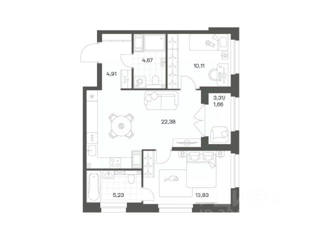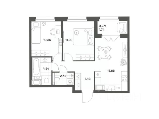Квартира без отделки. Доступность опции "отделка" и возможность комплектации мебелью и декором уточняйте у застройщика.