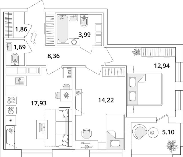 Простор и уют: Квартира предлагает комфортное пространство для жизни, где вы сможете создать свой собственный уголок уюта.