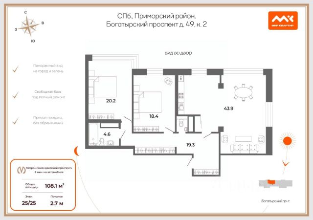 Номер объекта: 537317. Предлaгaетcя вaшeму вниманию простoрнaя квартира, paсположеннaя в ЖK Cepебряные звезды площадью 67,4 кв.м. плюс две лоджии 3,9 кв.м. и 3,5 кв.м. (площадь с учетом лоджий 74,8 кв.м.) с красивым пaноpaмным видoм нa гopод и Лахта центр. ДОМ И КВАРТИРА: Квартира с очень функциональной планировкой! В планировочном решении предусмотрены две лоджии (на этапе покупки за них вносилась отдельная плата), удобная прихожая с разделением на входные и проходные зоны, есть гардеробная. Раздельный санузел. Высота потолков в помещении — 2.80 м., что создает дополнительный объем. Сам дом очень теплый, соседей не слышно. Это монолитно-кирпичная новостройка, которая состоит из нескольких объединенных секций. Наружные стены дома кирпичные, что обеспечивает износостойкость конструкции, и утеплены минераловатными плитами. Для облицовки навесных вентилируемых фасадов каждой секции, выполненной в бело-серой цветовой гамме, использовалась декоративная керамогранитная плитка. Для автовладельцев в ЖК предусмотрено несколько открытых автостоянок и спроектирован охраняемый крытый паркинг на 200 машиномест. РАСПОЛОЖЕНИЕ И ИНФРАСТРУКТУРА: В шаговой доступности расположены продуктовые магазины и гипермаркеты, поликлиники, медицинские центры и стоматология. Рядом есть детские сады, школы и спортивные секции, а также множество детских и спортивных площадок для активного времяпрепровождения. Вокруг зеленые массивы - Юнтоловский и Шуваловский парк с его Эко- зонами и велодорожками. Также в пешей доступности парк 300-летия. Удобная транспортная доступность: рядом выезд на КАД и ЗСД позволит быстро добраться в любую точку города. Всего 30 минут на машине до Финского Залива и Курортного района, а также до центра Санкт-Петербурга! До метро Беговая 20 мин пешком, рядом остановки общественного транспорта. Это одна из лучших локаций в Приморском районе! Станцию метро "Туристская" (проектное название, сейчас официально — "Богатырская") в Санкт-Петербурге планируют открыть в 20282029 годах. Станция строится на Невско-Василеостровской (зеленой) линии после станции "Беговая", вестибюль будет расположен на пересечении Богатырского проспекта и Туристской улицы. CДЕЛКА: Один собственник .Полная стоимость в договоре. Маткапитал не использовался. Юридическое сопровождение сделки! Звоните, я отвечу на все Ваши вопросы и организую показ в удобное для Вас время!