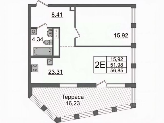 Площадь: 56,2 м² (кухня 17,7 м²)