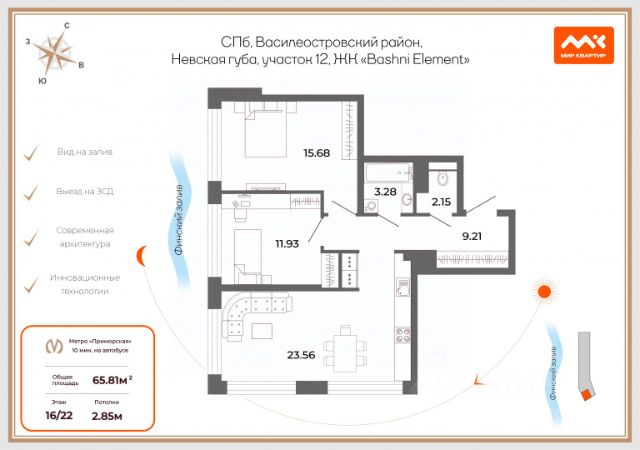 (По аналитике, у нас ЛУЧШАЯ ЦЕНА из всех квартир в этом жилом комплексе на квартиру с видовыми характеристиками. )