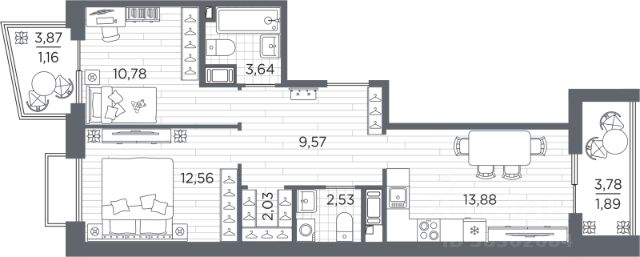 В квартире нет несущих стен и газового оборудования, что даёт возможность для официальной перепланировки.