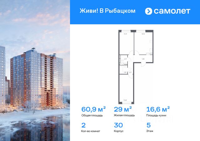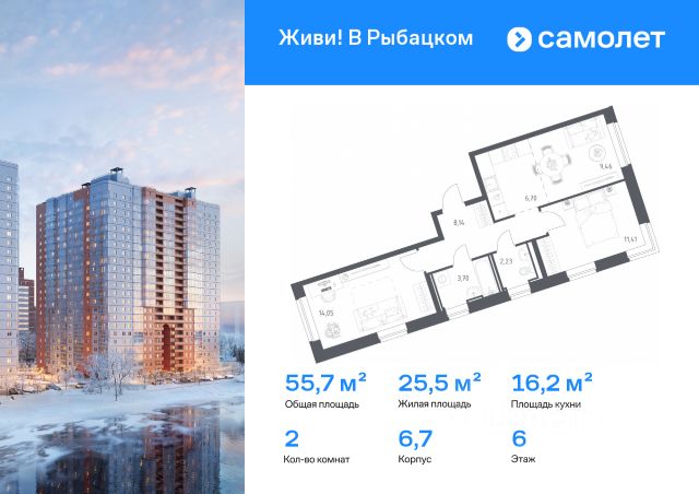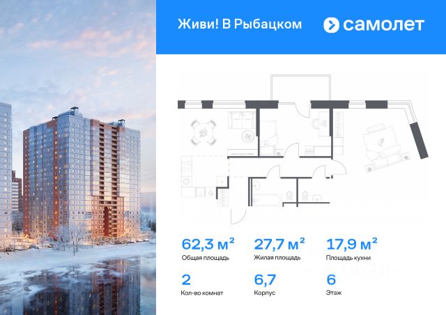 Строим кварталы для жизни с заботой о будущем. Предлагается 2-комнатная квартира комфорт-класса 49,2 кв.м в корпусе 39 на 1 этаже, в ЖК "Живи! В Рыбацком" Квартира без отделки. Доступность опции "отделка" и возможность комплектации мебелью и декором уточняйте у застройщика. Приобрести квартиру возможно по специальным акциям от застройщика, с текущими условиями акций можно ознакомиться в блоке "Акций". Цена динамическая и может отличаться, уточняйте актуальность у застройщика. Квартал "Живи! В Рыбацком" в Невском районе Санкт-Петербурга расположен рядом с рекой Славянкой и парком. Всего 20 минут пешей прогулки — и вы у метро "Рыбацкое". Автомобилисты будут добираться до КАДа за десять минут. В квартале работают два детских сада, школа и кабинет врача. На первых этажах зданий открыты магазины, кафе и салоны красоты. Во дворе — зеленые бульвары, воркаут-площадка, спортивный и игровой кластеры. Для машин — подземный паркинг. Кирпично-монолитные дома с каменной облицовкой — воплощение долговечности и тепла. Есть в квартале и камерный 30-й корпус, в нем восемь этажей, 70 квартир и приватный двор-парк. В сквозных парадных — безбарьерная среда, помещения для хранения колясок и велосипедов и система видеонаблюдения.