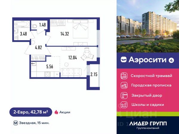 Развитая инфраструктура, школа, детский сад и поликлиника - рядом.