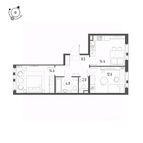 Продается квартира 472, по адресу г. Санкт-Петербург, поселок Шушары, Чудовская улица, дом 14, корпус 1, строение 1, корпус ЖК Монография в Монография на 12 этаже, с площадью 60.8 м2.
