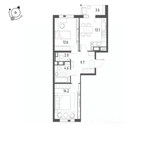 Продается квартира 659, по адресу г. Санкт-Петербург, поселок Шушары, Школьная улица, стр.1, корпус ЖК Монография в Монография на 12 этаже, с площадью 57.7 м2.