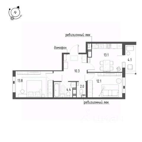 Продается квартира 413, по адресу г. Санкт-Петербург, поселок Шушары, Школьная улица, стр.1, корпус ЖК Монография в Монография на 12 этаже, с площадью 57.6 м2.