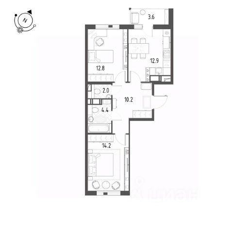 Продается квартира 568, по адресу г. Санкт-Петербург, поселок Шушары, Школьная улица, стр.1, корпус ЖК Монография в Монография на 12 этаже, с площадью 57.6 м2.