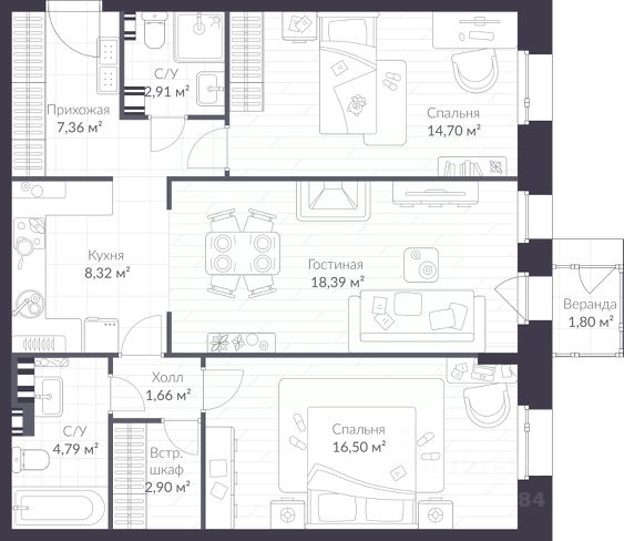 Продаётся 2-комнатная квартира в сданном доме (Корпус 8 (секция 9,10)), срок сдачи: II-кв. 2022, общей площадью 81.7 кв.м., на 3 этаже. Возможно ли, живя в городе, пользоваться преимуществами загородной жизни? Сочетать карьерные возможности с тишиной, пением птиц, свежим морским воздухом? Да - если вы живёте в VEREN VILLAGE стрельна. Петродворцовый район Северной столицы - это историческое окружение, умиротворяющая природа и особый стиль жизни. VEREN VILLAGE стрельна - совершенно новый формат малоэтажного жилья бизнес-класса: оригинальная авторская архитектура от именитого бюро "Остоженка", уникальные форматы квартир и насыщенная инфраструктура. Всего в 15 минутах от шумных городских магистралей - чистый воздух уютного зелёного района. Закрытая от посторонних территория, подземный и гостевой паркинги, разнообразные магазины в шаговой доступности. На территории комплекса даже есть озеро - чувствуйте себя отдыхающими в престижном курортном отеле! Оставьте позади однотипные бетонные многоэтажки: трёхэтажные дома VEREN VILLAGE стрельна не закрывают от вас солнце и звёзды. Отделка из кирпича ручной формовки долговечна и эффектно выглядит. В дизайне применяются натуральный камень и тёплое дерево. Панорамные окна и террасы открывают вид на озеро. VEREN VILLAGE стрельна - это небо, зелень, водоем, обрамляющие выразительную авторскую архитектуру.
