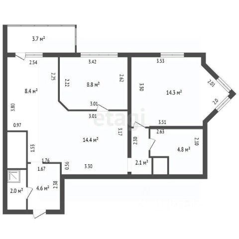 Прихожая 8,8 кв. м. В прихожей кладовка. Раздельный санузел. Металлические трубы водопровода заменены на металлопластиковые.