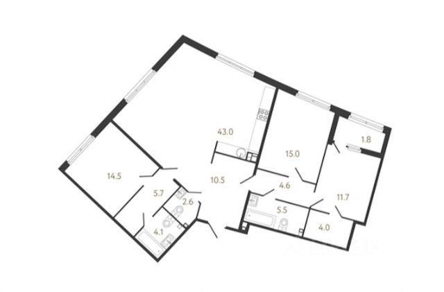 • ✓ В базе Циан 1 2-комнатных квартир без ремонта на улице Руставели в Санкт-Петербурге