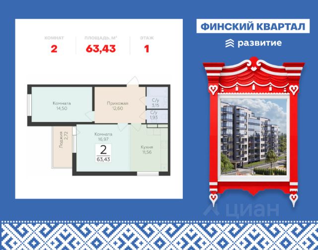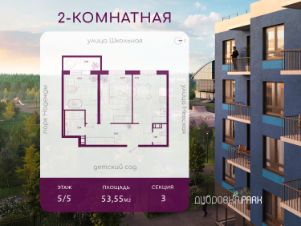 "Продается квартира площадью 56.05 кв. м с предчистовой отделкой. Квартира расположена на 2 этаже 8 этажного дома, в жилом комплексе комфорт-класса "Финский Квартал". "Финский квартал" - это уникальный проект комфорт-класса для тех, кто хотел бы жить на природе, но при этом находиться вблизи Северной столицы. Расположенный в окружении одного из самых крупных парков Ленобласти - Лахтинского, проект предлагает своим жителям доступную инфраструктуру, комплексное благоустройство территории, 6 секций переменной этажности с современной архитектурой, которая гармонично дополнит район и будет радовать проживающих еще много лет. Найдите свою идеальную квартиру в ЖК "Финский Квартал"! Расположение Пешком: - 5 мин. до детского сада и супермаркета; - 8 мин. до остановки "Зеленая улица"; - 10 мин. до лесопарковой зоны. На автомобиле: - 3 мин. до Приозерского шоссе; - 10 мин. до Выборгского шоссе; - 12 мин. до КАД; - 30 мин. до ст. метро "Проспект Просвещения". Благоустройство - большой яркий двор с ландшафтным дизайном; - живая изгородь, кустарники и хвойники; - умное зонирование тихих и активных площадок; - сквер для прогулок и отдыха; - изумрудные лужайки для пикников; - дорожки для пешеходов и велосипедистов; - большие игровые площадки; - мягкое покрытие для безопасности детей; - тренажеры, турники и веревочные комплексы; - пространство только для пешеходов - без машин; - наземная парковка за пределами двора; - специальные площадки для выгула питомцев; - светлые дизайнерские холлы; - светопрозрачное остекление и большие окна; - декоративная подсветка парадных; - колясочные помещения для комфорта родителей; - места для хранения велосипедов и самокатов. Окружение - свежий воздух: парк усадьбы "Осиновая Роща", Лахтинский парк, лесопарк "Курортный", Левашовский заказник, Ново-Кавголовский лесопарк; - водные объекты: Сестрорецкий Разлив, пляжи у Тохколодского и Большого озер, залив Сярюнлахти; - инфраструктура: 2 детских сада, школа, кафе, продуктовый супермаркет, больница; - для крупных покупок: ТРЦ "Китай-Город", "Мега-Парнас"", "Гранд Каньон"; - активный отдых: горнолыжные комплексы "Охта-Парк" и "Токсово", конный клуб "Осиновая Роща", ФОК "Норус"." Купить 2-комнатную квартиру в дешевой новостройке в Ленинградской области.
