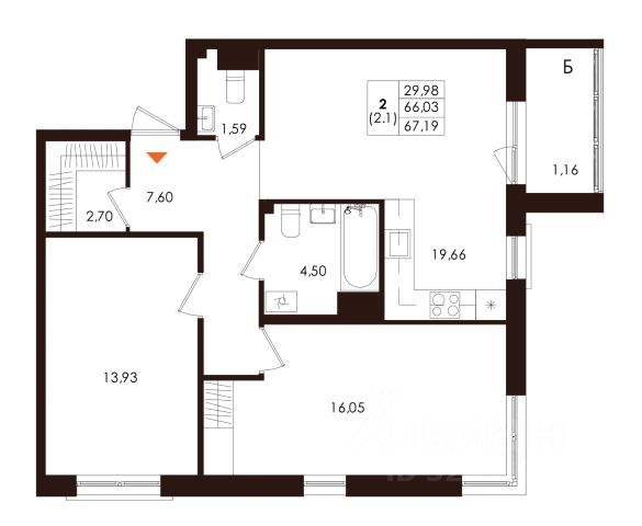 - две раздельные комнаты 20,1 и 16,3 кв м;