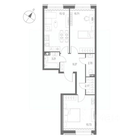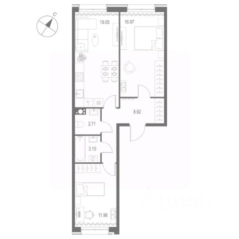 В квартире площадью 75 м2 с дизайнерским ремонтом есть: