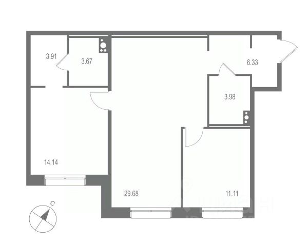 2-комн. апартаменты в ЖК "Северная корона" на 6 этаже. Апартаменты без отделки, после получения ключей можно делать ремонт. Общая площадь: 76.6 кв.м., жилая: 36 кв.м., площадь просторной кухни-столовой: 20.5 кв.м. Угловая квартира, идеально подойдет любителям тишины и панорамных видов. В апартаментах один совмещенный и один раздельный санузел. Высота потолков 3.3 м.