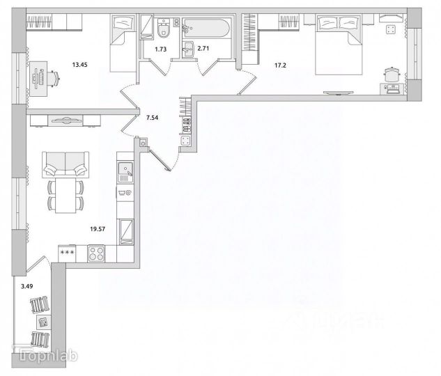 Квартира с двумя спальнями и большой кухней-гостиной. В шаговой доступности 5 парков, развитая инфраструктура обжитого района. Удобный и быстрый выезд на КАД. О ЛОКАЦИИ: Во дворе дома детский сад и начальная школа. В доме приемный кабинет педиатра, 2 пекарни, 3 пункта выдачи, Вкусвилл, Магнит, Аптека. В соседнем доме - фитнес с бассейном. О ЖИЛОМ КОМПЛЕКСЕ: Сдан в 2020 году, кирпич. Приличные соседи. Наземный паркинг под шлагбаумом. О КВАРТИРЕ: Двухкомнатная квартира с просторной кухней-гостиной (евро 3). Спальни по 12 и 14 кв. м. Кухня-гостиная 13,7 кв.м. Раздельный санузел. Мебель на фото готовы оставить. Кухня оснащена всей техникой, включая посудомойку. Звоните, сориентируем по объекту и сделке. 2-комнатная квартира элитные на проспекте Пискаревский в Санкт-Петербурге.