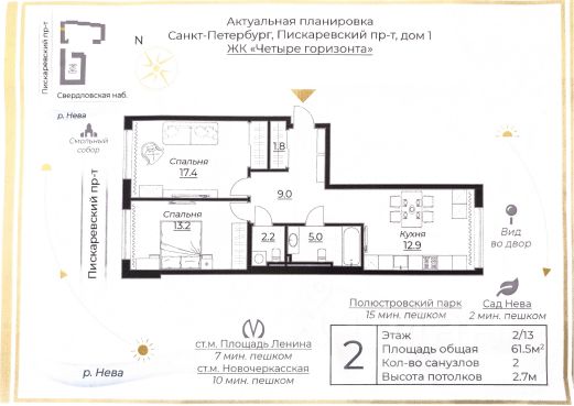 С 03.09 по 12.09 в отпуске, буду не на связи. Пишите вопросы в сообщениях, буду отвечать, но не оперативно. Запись на показы с 15.09. Приглашаем Вас на просмотр уникальной квартиры, где современный стиль гармонично сочетается с историческим наследием. Ремонт, выполненный в 2020 году, создает идеальные условия для комфортной жизни. Жилой комплекс бизнес класса "Четыре горизонта" от RBI стал настоящей доминантой на Свердловской набережной, привлекающей внимание своей великолепной архитектурой. Многие мечтают стать частью этого элитного района, и у Вас есть такая возможность. Комплекс перекликается с обликом памятников кирпичной архитектуры Петербурга конца XIX — начала XX веков. Во дворе расположена отреставрированная водонапорная башня Охтинской бумагопрядильной мануфактуры, что добавляет особый шарм этому месту. Продуманное планировочное решение включает две изолированные спальни, просторную кухню-гостиную площадью 19,8 кв.м., два санузла и гардеробную. Во всех помещениях потолки 3м. Квартира впечатляет идеальным состоянием и дизайнерским ремонтом. Здесь установлена премиальная бытовая техника Korting, а полы оформлены из паркетной доски из ценных пород дерева. Разнообразные сценарии освещения создают уютную атмосферу, а окна открывают живописный вид на большую Неву и исторический центр города. Интерьер квартиры сочетает в себе элементы лофта и хай-тека, что идеально подходит для тех, кто ценит практичность и функциональность. Грубая индустриальная отделка гармонирует с современными элементами и техникой. В отделке использованы металл, стекло и натуральное дерево. Четкие линии и простые геометрические формы создают минималистичный и стильный облик, а обилие света (как естественного, так и искусственного) наполняет пространство жизнью. Кухня оформлена с использованием плитки из натурального камня и Венецианской штукатурки на стенах. Деревянные балки на потолке и массивная дверь в гардеробную подчеркивают натуральность и экологичность материалов, из которых выполнена квартира. В доме имеется паркинг, с которого можно подняться прямо на этаж, не выходя на улицу, что обеспечивает максимальный комфорт для жителей. Дополнительные преимущества: Прямая продажа, полностью узаконенная перепланировка, один собственник, собственность более 5 лет. Не упустите возможность стать обладателем этой уникальной квартиры! 2-комнатная квартира элитные на проспекте Пискаревский в Санкт-Петербурге.